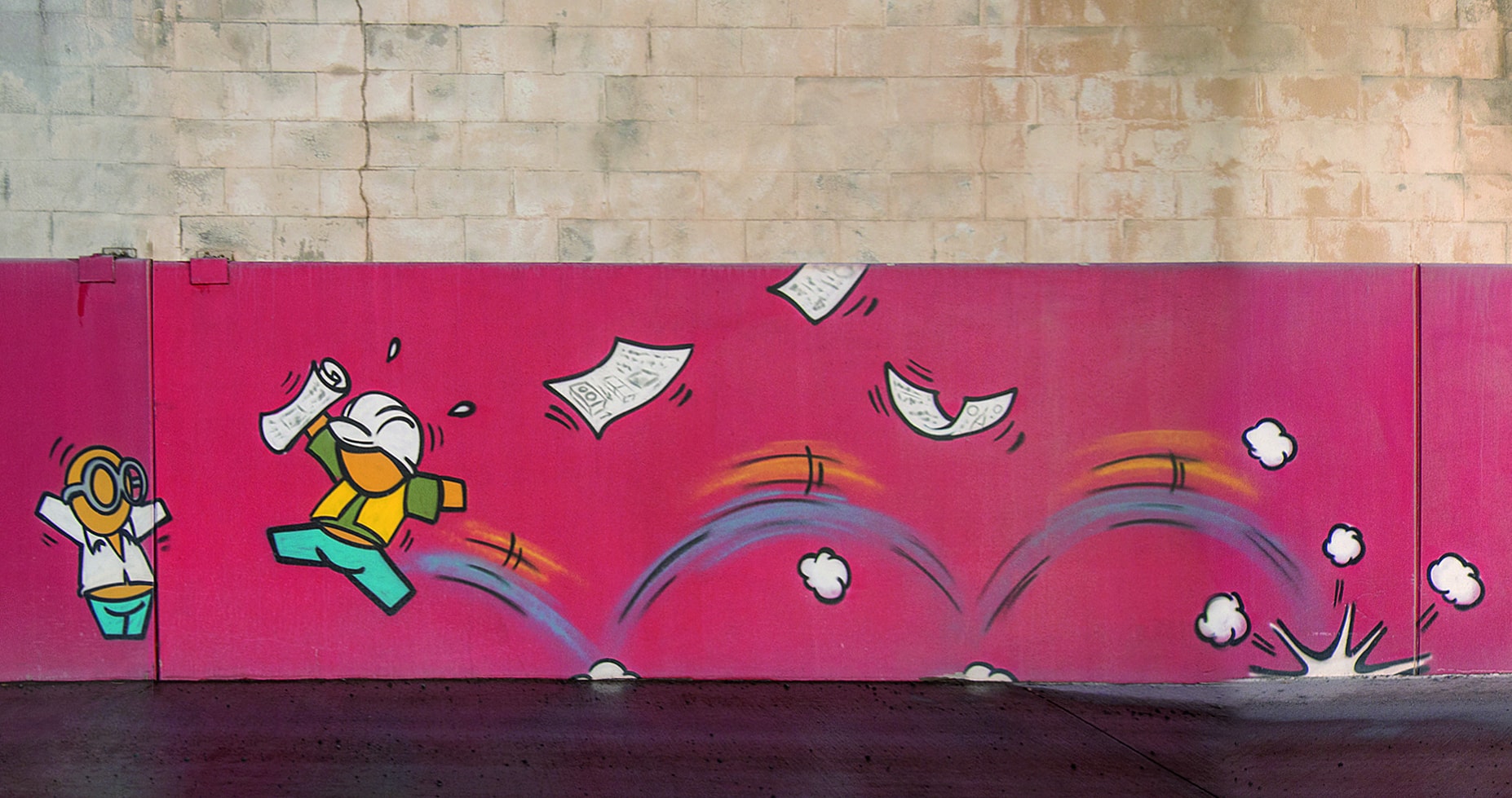 Le graffeur Jace a accepté de rendre plus doux le monde brut de Soreco-Sigemat. Résultat, une histoire de Gouzou, personnage fétiche de l’artiste, présent sur les murs et la centrale à béton du site de Saint-Pierre…