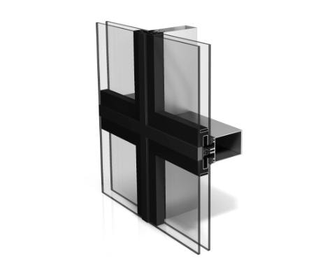 Sur le plan technique, ce mur-rideau de type VEC fait appel à une mécanique cachée des éléments verriers. Grâce à l’intégration d’un profil en “U” dans le joint silicone (23 mm) du vitrage, double ou triple, de type Structurel (SG Structural Glazing). Les fixations de type “clameau” sont dissimulées et positionnées dans la structure montants/traverses, verrouillant l’ensemble par un simple quart de tour. Le cordon silicone permet une finition lisse de la façade et contribue à la rigidité du mur-rideau.